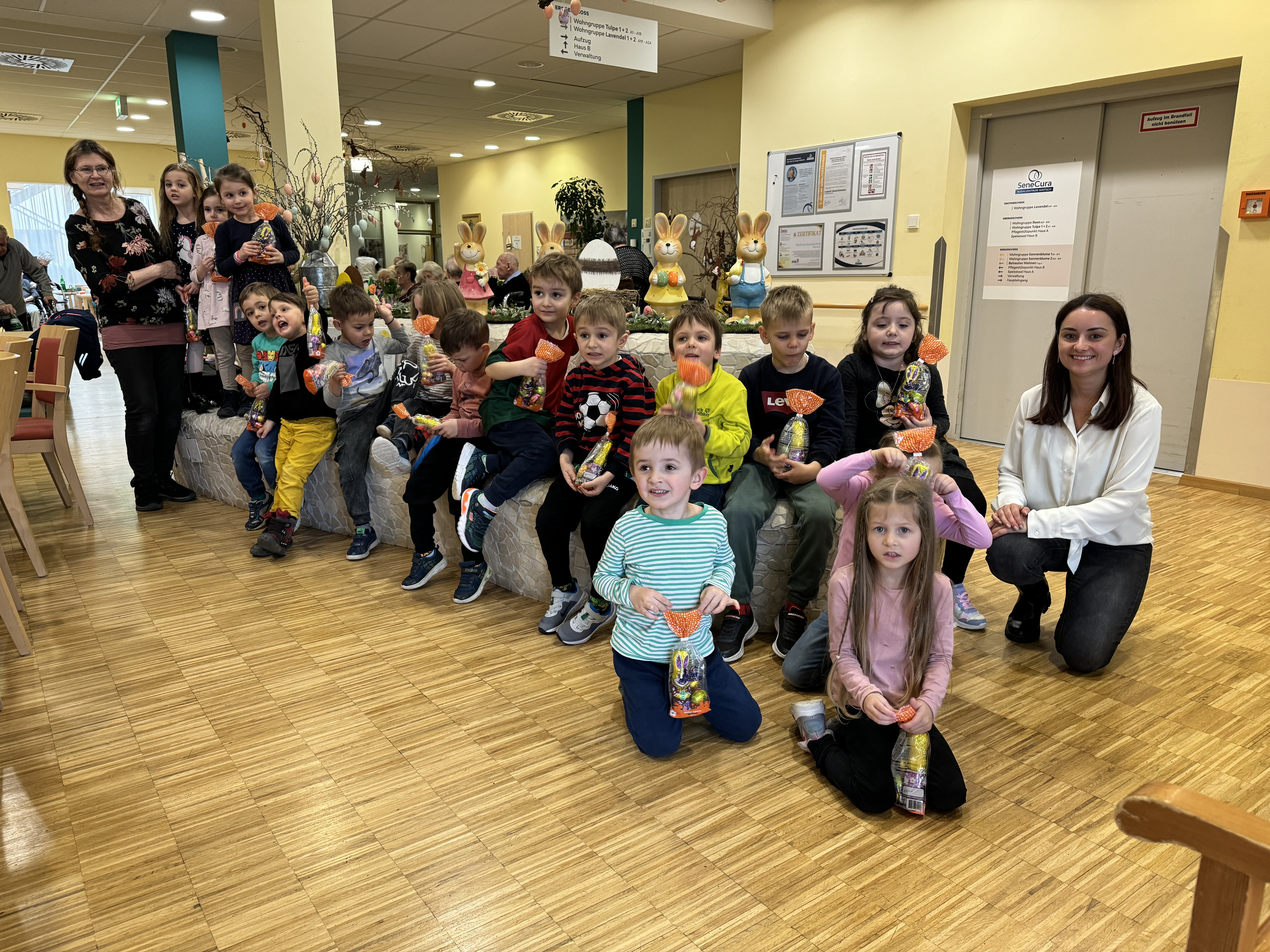 Das SeneCura Sozialzentrum Nikitsch hat zu einer fröhlichen Osterfeier eingeladen, bei dem auch die Kinder des örtlichen Kindergartens herzlich willkommen waren. Gemeinsam genoss Jung sowie Alt ein Fest voller kunterbunten Ostereiern, köstlichen Leckereien und so einiges an stimmungsvoller Musik. Highlight des Tages war der Besuch des Osterhasen, welcher die Bewohner:innen sowie Kinder mit einem kleinen Geschenk überraschte. Alles in allem war es ein gelungenes Osterfest, welches von Spaß und Osterzauber geprägt war.