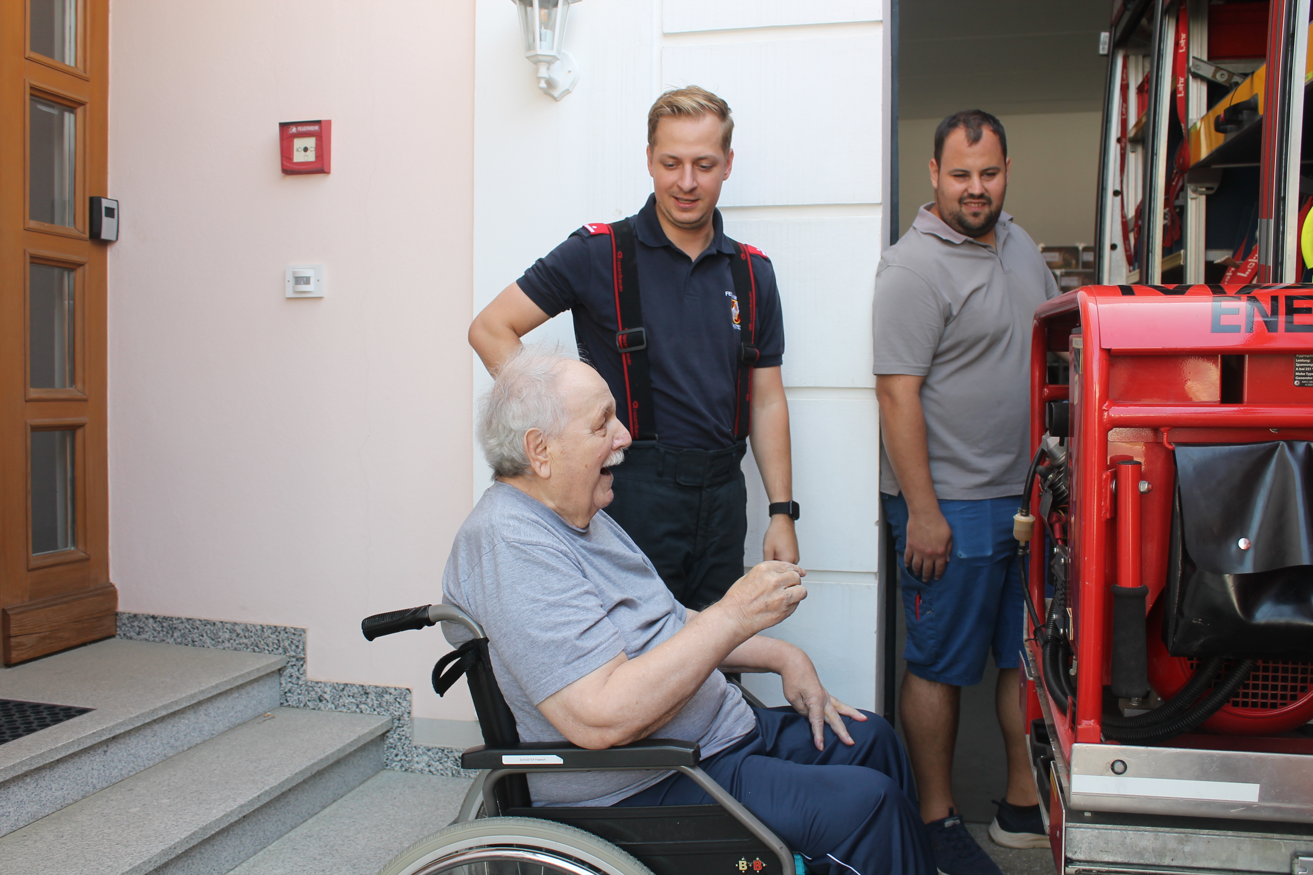 Im SeneCura Sozialzentrum Nikitsch ging ein langersehnter Jahreswunsch in Erfüllung, denn der Bewohner Herr Schuster durfte die freiwillige Feuerwehr Nikitsch besuchen. Schon lange redete er davon, wieder einmal hinter die Kulissen der Feuerwehr zu blicken. Das Team des Hauses ließ es sich nicht nehmen, ihm diesen Wunsch zu erfüllen. Angekommen bei der Feuerwehr erhielt der Bewohner eine Führung durch das Feuerwehrhaus, durfte die Fahrzeuge betrachten und bekam so einiges Wissenswertes erklärt. Der besondere Tag zauberte Herr Schuster ein breites Lächeln ins Gesicht und er erzählte noch lange von seiner Jahreswunscherfüllung.